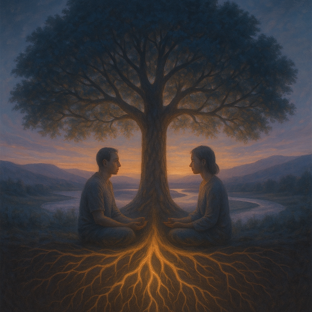 We’ve all felt it—those moments when love touches us not like fire from above, but like roots wrapping gently around the heart. When a friend holds us in grief, when a lover’s embrace feels like a homecoming, when we see ourselves reflected in another’s gaze and remember who we are—these are all expressions of the descending current. Here, the soul’s motion is not to fly, but to dwell. Not to escape, but to inhabit.