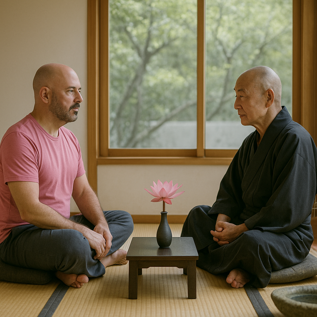 Joe Perez: I do understand, Roshi. And I honor the depth of discipline in your tradition. But I come to you from a different lineage—not of robes and silence, but of eros and confession. I walk the path I call the Unitive Way, in which desire, properly integrated, becomes a gate to Presence. Even—especially—homosexual desire.